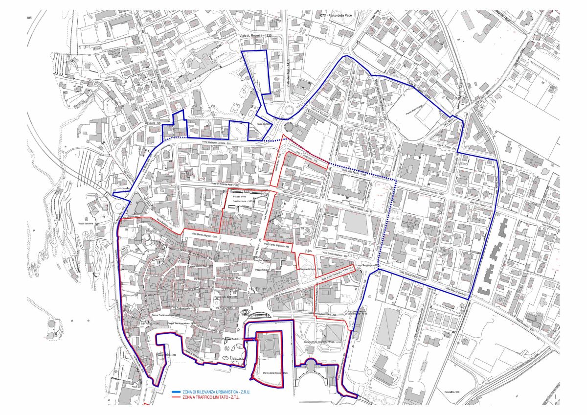 La zona di rilevanza urbanistica comprende quello che era definito come "centro storico allargato" più un'ulteriore area. Per maggiori dettagli si rimanda alla mappa (pulsante a lato).